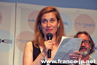 今年の団長を務める、フランスの実力派女優のエマニュエル・ドゥヴォスは日本語で「コンバンワ。東京に来られてうれしいです。仕事で来るだけでは、ちょっと残念。東京をたっぷり楽しもうと思います。」と挨拶をはじめ、「後はフランス語で続けさせて頂きます。来日でき大変光栄に思います。日本で開催されるこのフランス映画祭は、監督や役者やプロデューサーが競って、自身の映画を紹介しに来たがる映画祭です。」と話した。