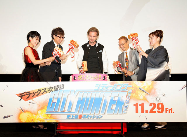 MOVIE 史上最香のミッション』の監督でありニッキー・ラーソン=冴羽リョウ役のフィリップ・ラショーが来日し、吹替版キャストの山寺宏一、沢城みゆき、神谷明、伊倉一恵と共に完成披露試写会に出席した。